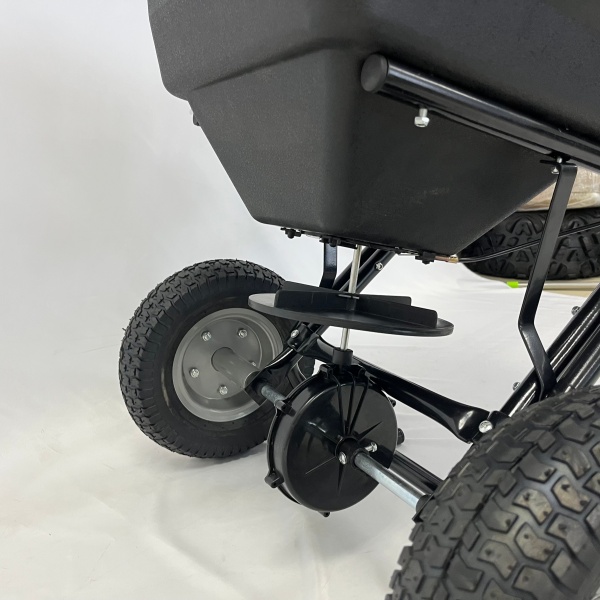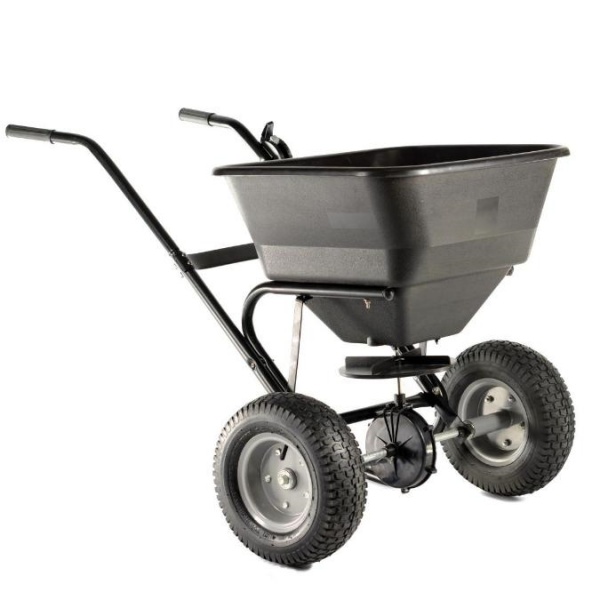 broadcast spreader satisfies large-scale broadcasting in one go, eliminating constant refilling. The walk-behind spreader also supports the distribution of multiple types of seeds. Whether you have a small lawn or a spacious yard, this spreader cart is your all-year-round companion—seed in spring, fertilize in summer, weed in autumn, and spread salt in winter.